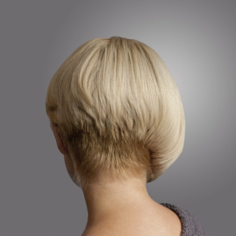 Forward falling slice cut layers make a perfect Pixie Cut for fine hair types. Creative hair coloring techniques such as frosted ends will make fine hair look coarser, helping to add needed texture.