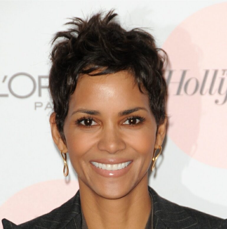 Halle Berry is known for her perfect bone structure and of course, her spiked short do.